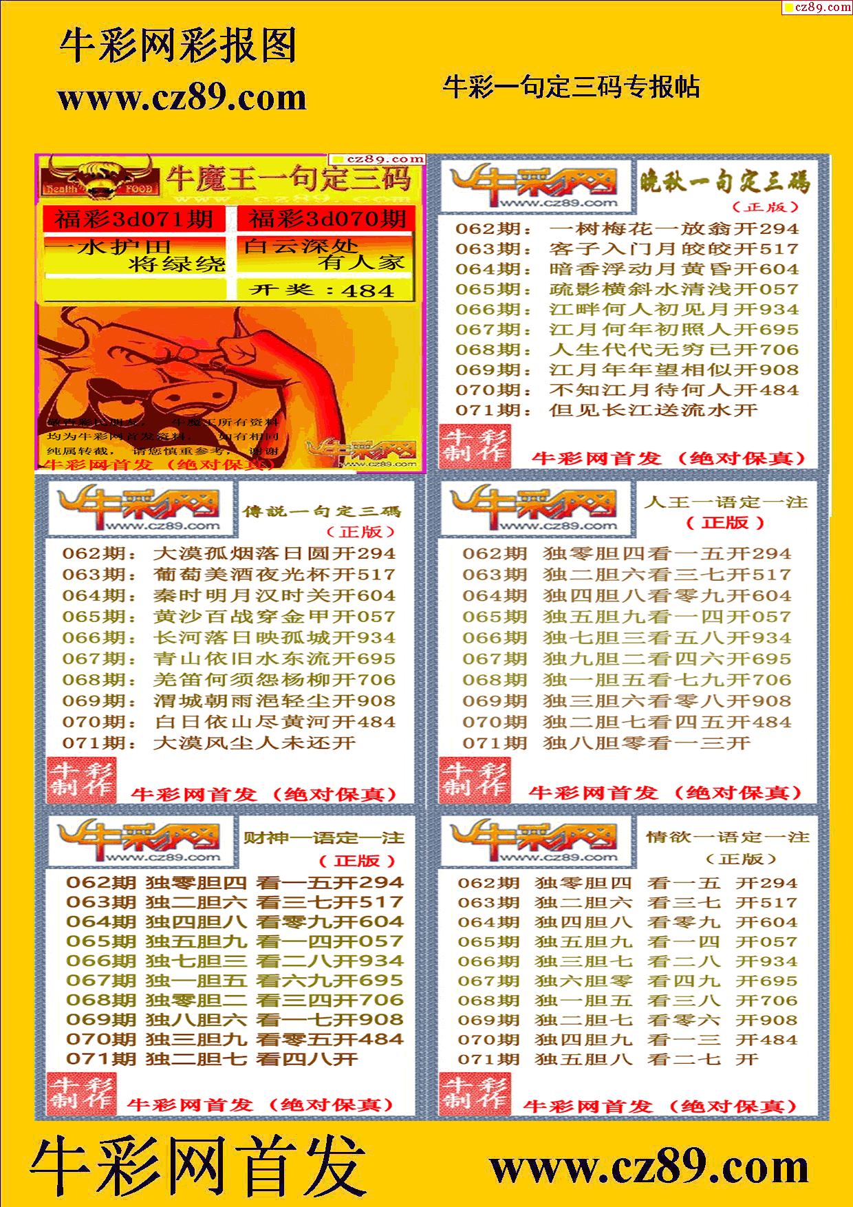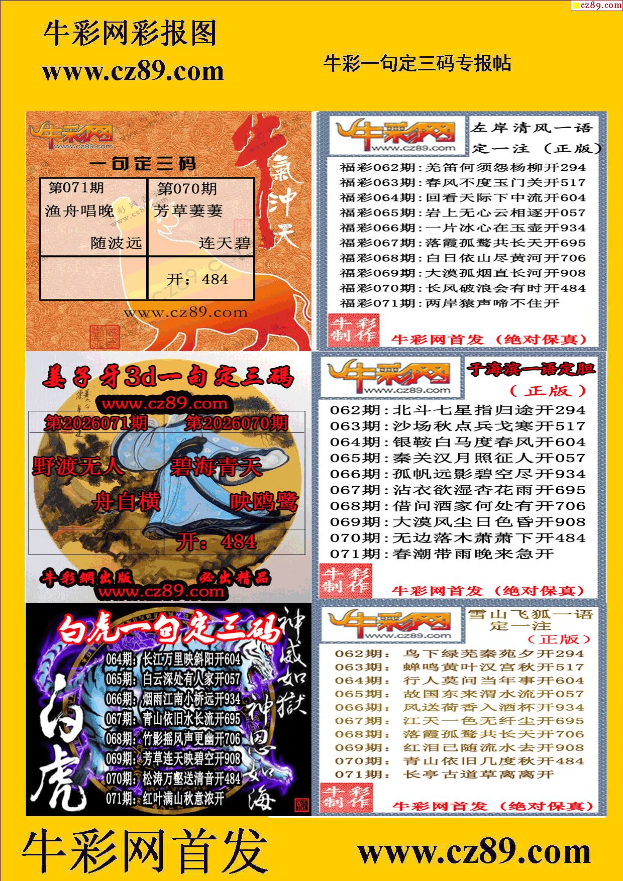 > 2026071期牛彩专家一句定三码彩报