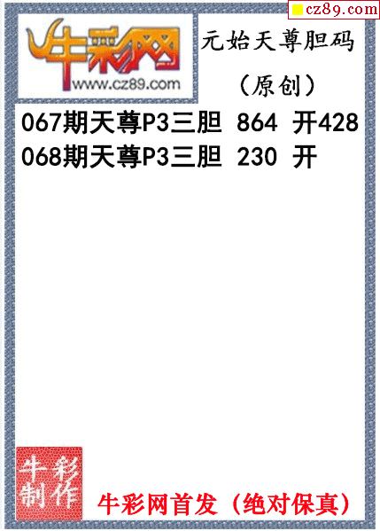 元始天尊胆码图068期体彩P3图谜(原创)